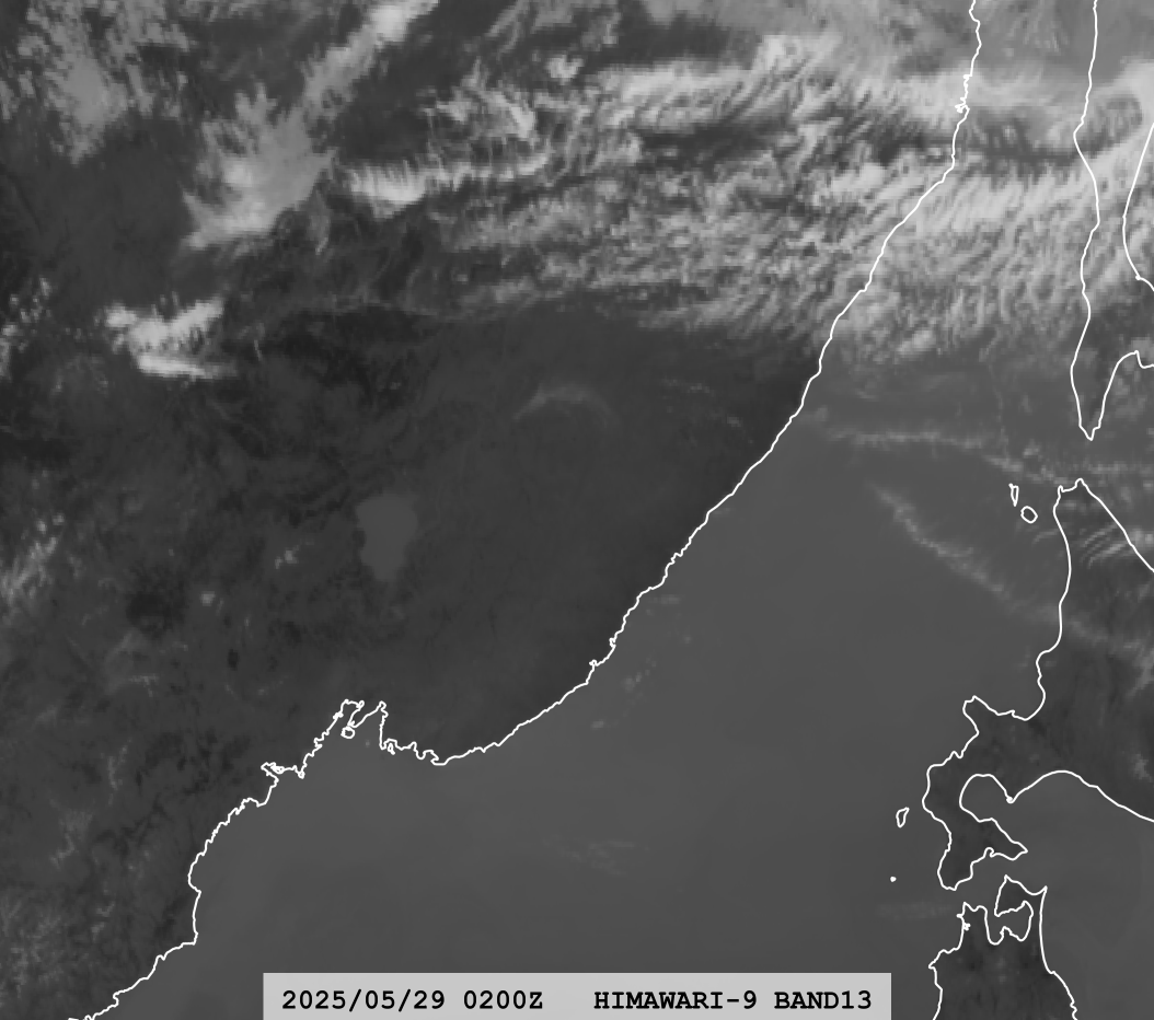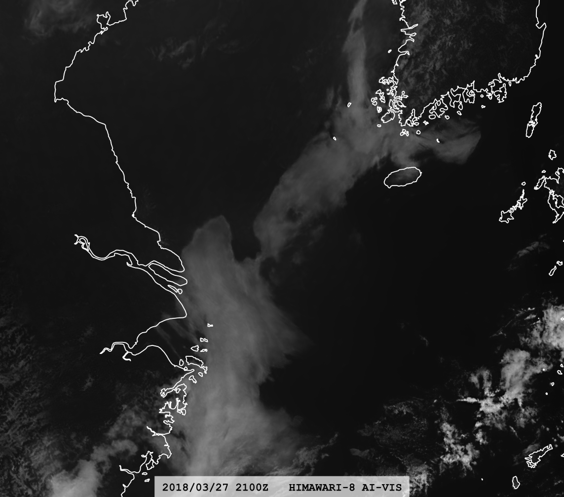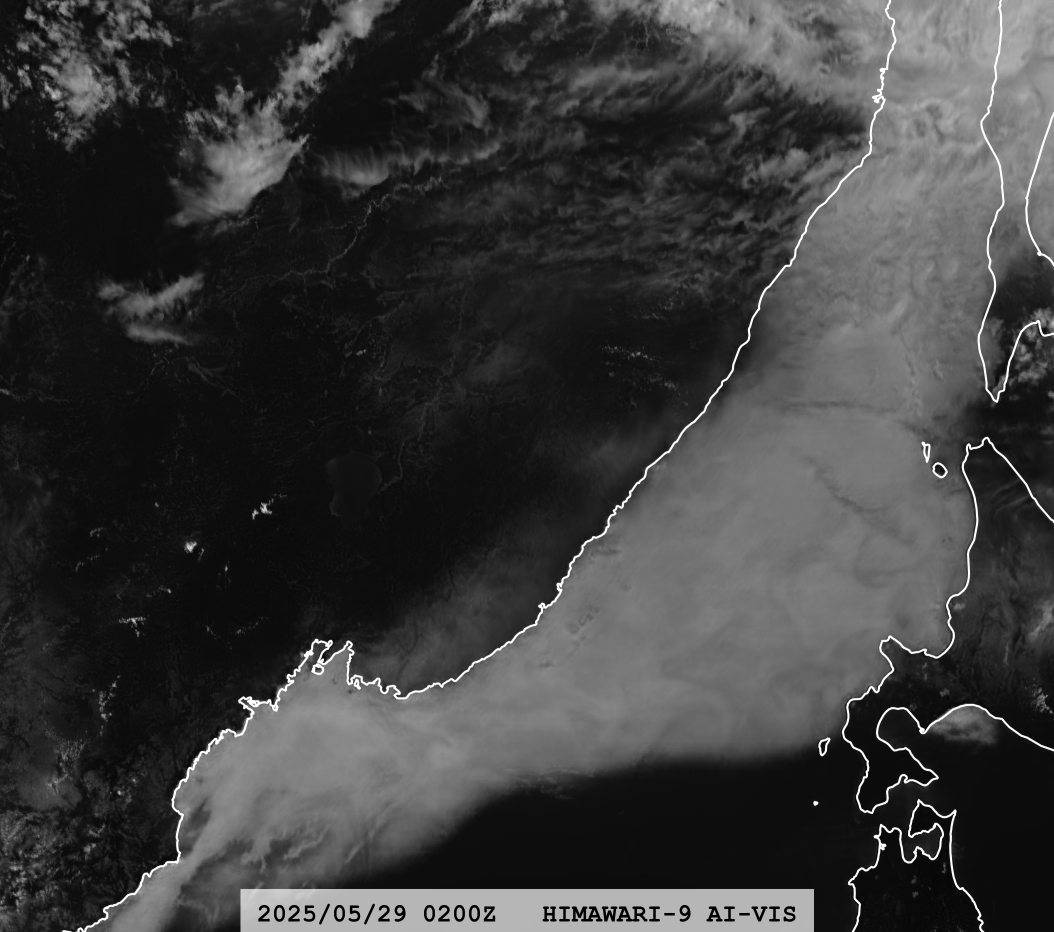 Processed by our super-resolution network specifically trained on a VIS dataset; provides image resolution close to AHI Band 03 (0.5 km at nadir).